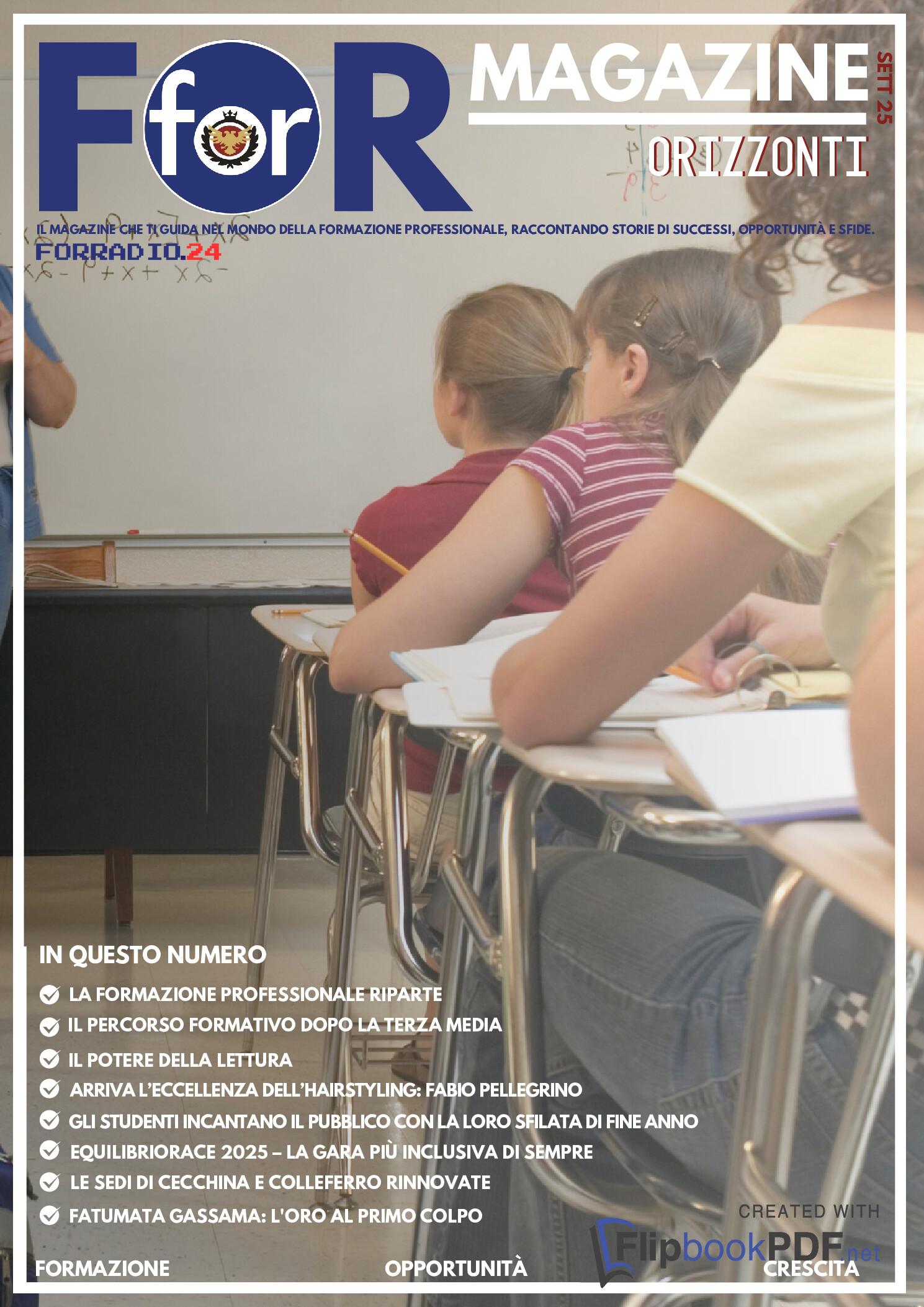 Con l’inizio del nuovo anno formativo, le aule si sono riempite di voci, sguardi ed entusiasmo. La formazione professionale non è soltanto studio o pratica di un mestiere: è un vero investimento sul futuro. I percorsi attivi nei settori della ristorazione, estetica, acconciatura, meccanica, elettrico, informatica e moda offrono ai giovani non solo competenze tecniche, ma anche esperienze concrete di laboratorio e stage che li preparano a entrare con sicurezza nel mondo del lavoro o a proseguire gli studi.Il magazine di settembre racconta questa energia, mettendo in primo piano le novità delle sedi rinnovate di Colleferro e Cecchina, l’arrivo dell’eccellenza dell’hairstyling con Fabio Pellegrino, l’inclusione promossa da EquilibrioRace 2025, e le storie dei nostri studenti, come quella di Fatumata Gassama, campionessa italiana Under 20 di lotta libera.Esperienze, talenti e passione si intrecciano in un racconto che testimonia come la formazione professionale sia oggi una scelta vincente per costruire il proprio futuro.👉 Scopri il magazine completo e lasciati ispirare dalle storie di chi ha già intrapreso questo cammino.